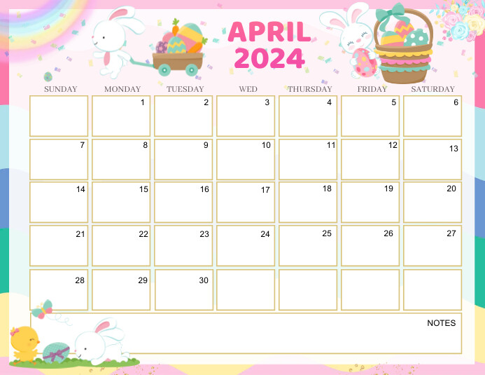 Editable April 2025 Calendar PDF Template,happy Easter Day